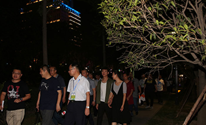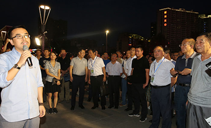 首先考察組一行來到唐城墻遺址公園北廣場,高新區(qū)夜景照明及唐遺址公園燈光秀的總設(shè)計師、北京信達(dá)電通科技董事長王春龍先生給眾領(lǐng)導(dǎo)講解由信達(dá)電通設(shè)計策劃的高新區(qū)夜景亮化提升方案。