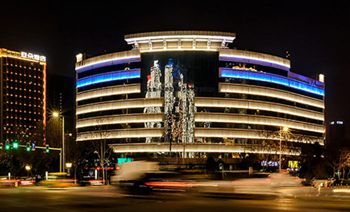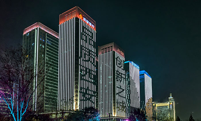 隨后觀摩燈光秀展演及周邊夜景亮化效果。北廣場上絢麗多彩的燈光秀吸引了不少路人駐足欣賞。這里的燈光秀為國內(nèi)首次在戶外應(yīng)用機(jī)器人臂舞動LED屏幕,不斷變換的美麗圖案、不斷閃爍的彩燈令人應(yīng)接不暇。沿著錦業(yè)路、唐延路、科技路一路向北,這里的彩燈最為集中,也最璀璨照人。