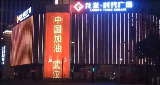 2月10日晚,華燈初上,位于西安高陵的一站式購物中心——龍發(fā)時代廣場,一組應援武漢的標語點亮,“武漢加油 中國加油”滾動播出,不僅點亮夜空,更點燃西安廣大市民共同戰(zhàn)勝疫情的信心。