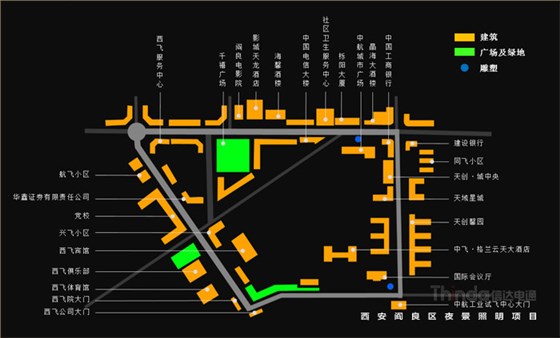 本區(qū)域亮化規(guī)劃策略要確定閻良區(qū)夜景亮化設(shè)計策略需考慮的因素,利用閻良區(qū)已基本形成的道路系統(tǒng)、廣場、公園、綠地,來構(gòu)建閻良區(qū)夜景亮化系統(tǒng)。同時亮化規(guī)劃設(shè)計策略從示范街?jǐn)U展到整個閻良區(qū)的亮化總體規(guī)劃,本次亮化雖然是示范區(qū),但亮化設(shè)計的整體高度是從整體區(qū)域著手的,示范區(qū)延續(xù)整體區(qū)域的亮化設(shè)計思路,貫穿科技與技術(shù)的設(shè)計創(chuàng)新,結(jié)合高效節(jié)能的設(shè)計目標(biāo),遵循人性化的亮化設(shè)計原則,為閻良區(qū)進行適應(yīng)城市發(fā)展的、能夠長期為城市使用的亮化規(guī)劃設(shè)計。