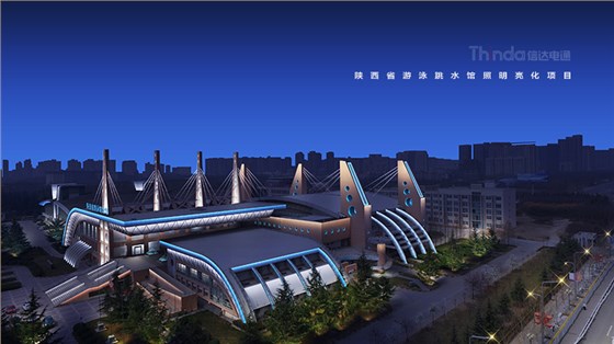 陜西省游泳跳水館是信達(dá)電通在西安高新區(qū)規(guī)劃項(xiàng)目中的一環(huán),游泳館外觀狀似揚(yáng)帆遠(yuǎn)洋的旗艦,其建筑結(jié)構(gòu)、配套設(shè)施等都屬國內(nèi)先進(jìn)。信達(dá)電通依據(jù)建筑本身特性對(duì)建筑的輪廓和頂部進(jìn)行重點(diǎn)照明,突出建筑結(jié)構(gòu)。燈光采用冷暖色調(diào)結(jié)合的方式,依照西安高新區(qū)整體的照明規(guī)劃,加強(qiáng)與周邊建筑的銜接與互動(dòng)。