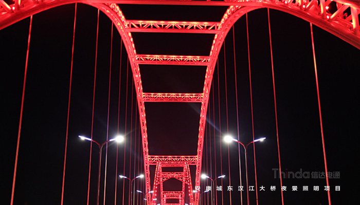 城東漢江大橋呈南北走向,全長1.9千米。信達電通以簡潔、大方、現代、美觀為設計風格,橋墩和橋拱以暖黃光為主,保障橋梁的夜間功能性照明,同時形成統一的照明結構。信達電通西部分公司的成立,確保城東漢江大橋夜景照明設計、施工、運維等全過程服務的實施。